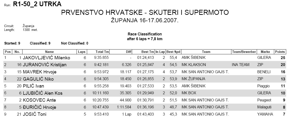 Dakle , 17. 06. 2007. godine se održala druga "trka" PH Hrvatske za skutere i to u Županji. Evo rezultata..